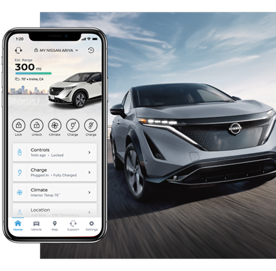 Get everything from important owner information to roadside assistance, electric vehicle functions like Remote Charging, and more on the Nissan ARIYA app. 10 8